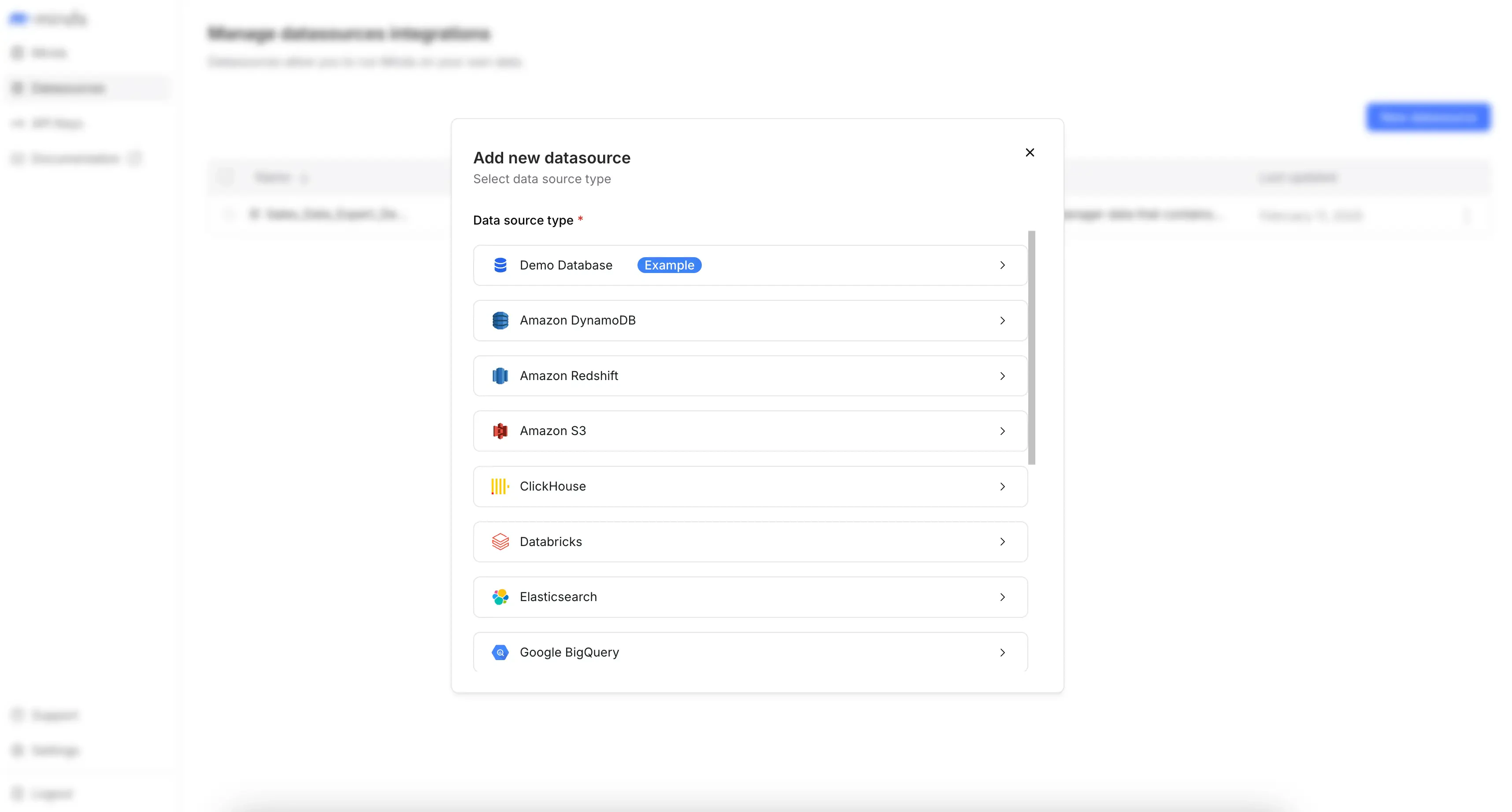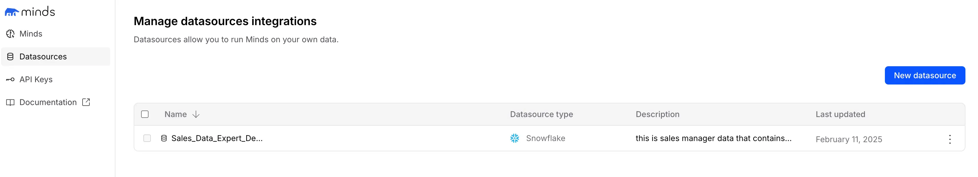 - The Data tab lists connected data sources. Note that you can connect multiple data sources to a Mind.