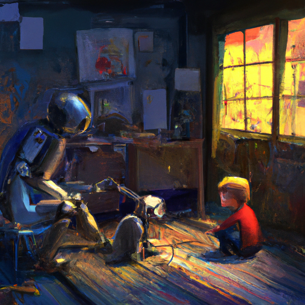 | a cute robot helping a little kid build a better world | https://oaidalleapiprodscus.blob.core.windows.net/private/org-1QXk2w4H0OhDrF2Hd4QV5K2c/user-piMc91jPmVdhttPLHl2y50E7/img-p5NROyoV5ysWWUY91xhQUZdg.png?st=2023-05-29T16%3A45%3A02Z&se=2023-05-29T18%3A45%3A02Z&sp=r&sv=2021-08-06&sr=b&rscd=inline&rsct=image/png&skoid=6aaadede-4fb3-4698-a8f6-684d7786b067&sktid=a48cca56-e6da-484e-a814-9c849652bcb3&skt=2023-05-29T10%3A29%3A15Z&ske=2023-05-30T10%3A29%3A15Z&sks=b&skv=2021-08-06&sig=vUI9vedjWtA7L0J3V0/4c05Wzh1Kf2/zyl%2BN1yfK6rU%3D |