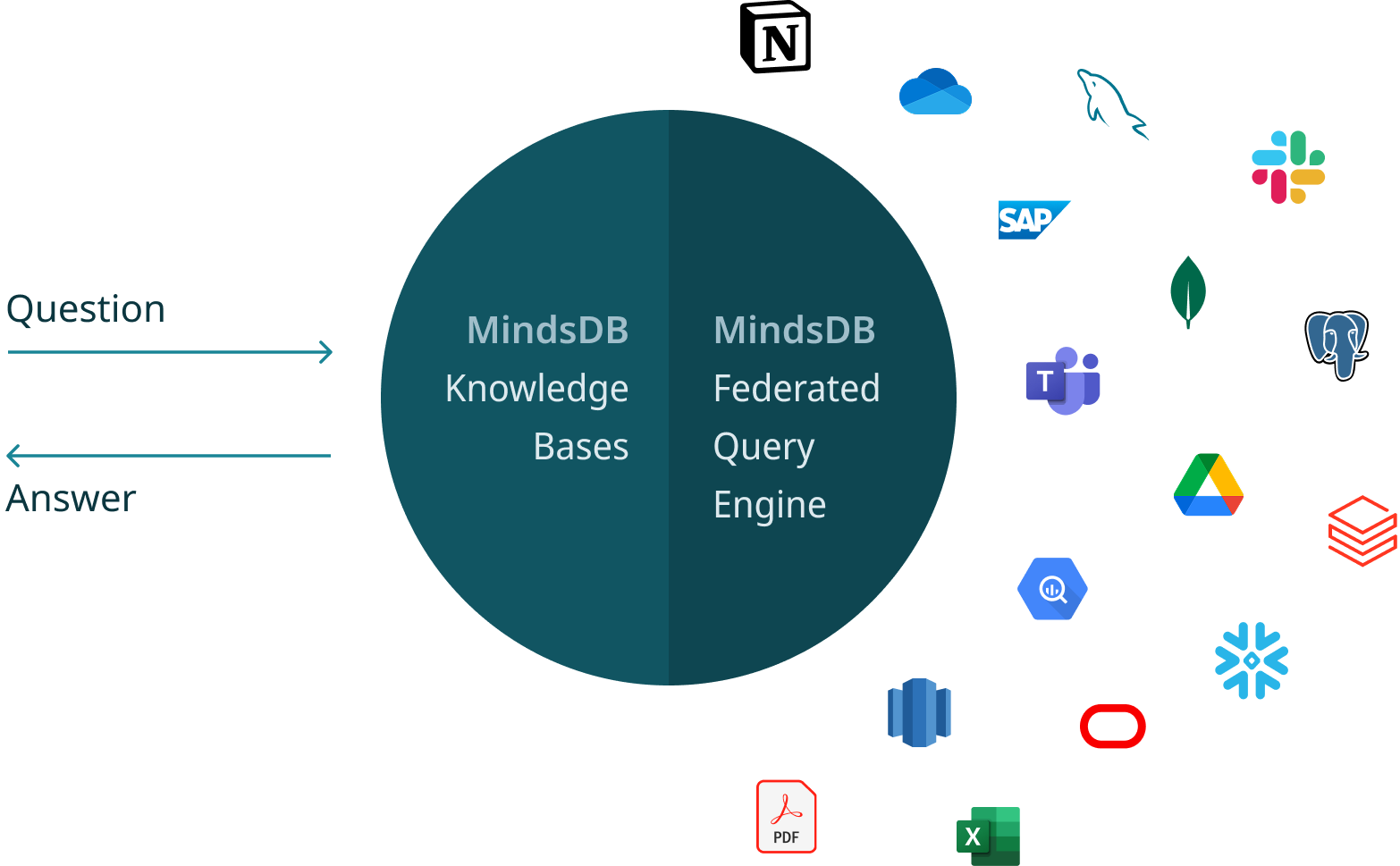 Connect data from hundreds of data sources that integrate with MindsDB, including databases, data warehouses, applications, and vector databases.Learn more here.